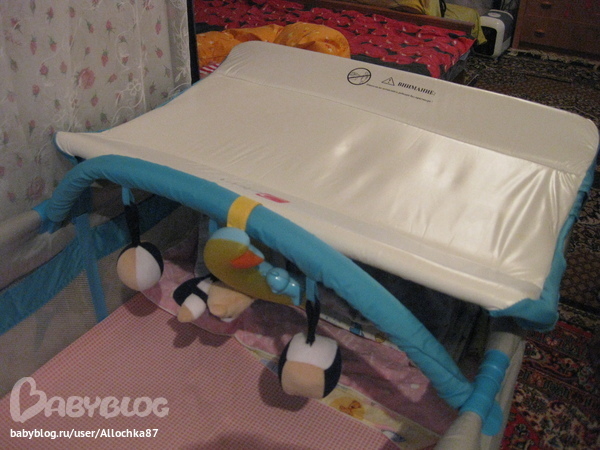 У нас было что от наподобие вашей - манеж-кровать Babies P-1A, так и вправду очень удобная вещь, три в одном как говорится манеж, кровать и пеленальный столик, так что очень полезная штука.