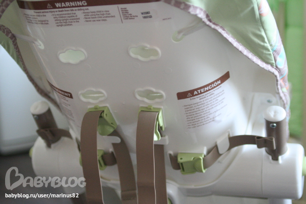 Описывать долго не буду, на фото и так все видно. Ткань на сидушке типа плащевки,очень мягкая и приятная на ощупь, легко стирается и если сразу вытереть пюре, то не всегда и пятна остаются. Ограничитель между ножек откручивается. Вес ребенка примерно до 22,5 кг. Стул легко передвинуть, даже с сидящим в нем ребенком. Стоимость в штатах 99,95$ и доставка 90$ (доставка приорити). Покупали у этого продавца http://myworld.ebay.com/ladylainesboutique/