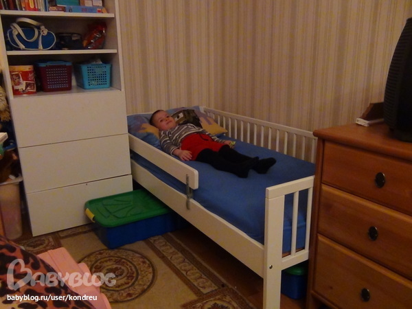 Мои дети спят с двух лет в Гулливере от Икеи. По трем сторонам короткие бортики + дополнительный бортик по четвертой стороне. Очень удобно, чтобы не упали, и стенку не обтирают. И размеры небольшие 160х70. Но этих размеров минимум до 12 лет хватит.