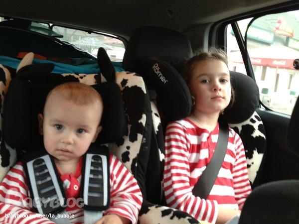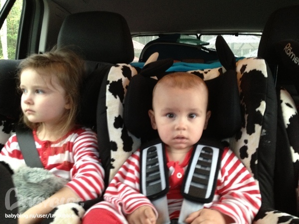 А это в опеле, в пижамах рано утром - так как отдыхать мы ездили на машине)))))) Стоят в притык, пристегивать не удобно было, но привыкли)))