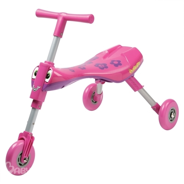 только у нас с розовыми пластмассовыми деталями вместо голубых. спереди приятный гудочек (не пронзительный), диски металлические, шинки из псевдорезины (как у тростей) - не шумят по полу вообще. аккуратный и компактный. весит 3.5 кг (без кузовка и на пластиковых дисках их вес составляет 2,7 кг). но я решила взять попрочнее.