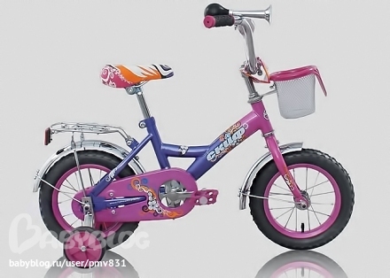 а сейчас к 3-х летию, к новому году да и просто так я купила ей велосипед трехколесный российского завода "Старт" за сущие копейки. подарила сегодня, так как дите заболело и захотелось его как-то развеселить. ребенок начинает потихоньку учиться. пока чуть-чуть. но принцип вождения уже усвоила. вот наш мотик: