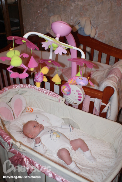 Кроватка Джованни Бельканто в цвете вишня, а рядом поставили колыбель Джованни Паола . Очень любили мобиль, а на колыбельку он не ценлялся, вот и вешали на кровать наружу.
