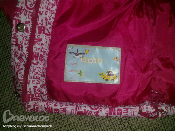 утяжечка по низу курточки и приятная мелочь в виде нашивки куда можно вписать данные ребенка)))