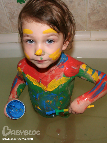 мы такими красками в ванной на кафеле рисуем, потом не отходя от кассы смываем и все довольны и мама и дети! с кафеля смывается без проблем пока свежая. еще интересно на себе порисовать))