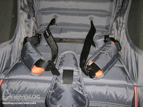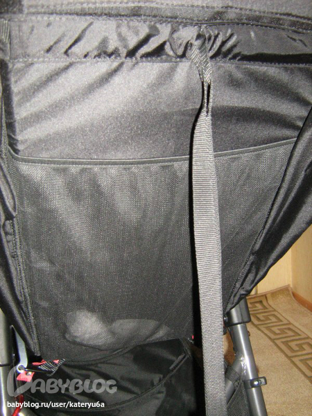 на спинке есть сетка для мелочей.сама спинка на ремнях(мне не нравится.неудобно поднимать ее)