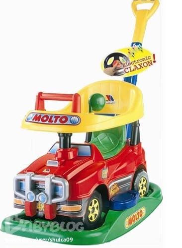 У нас такая. Сыну очень нравиться, на поддоне можно на ней качаться как на качалке, бибикалка когда нажимаешь 2 мелодии играет. Сын опираясь на нее учиться ходить. Еще там ключик поворачивается и зеркальце. Бампер и ручка, подножка снимаются и она становиться просто машинкой на которой можно кататься. Я считаю вам посмотреть аналог но уже без поддона.