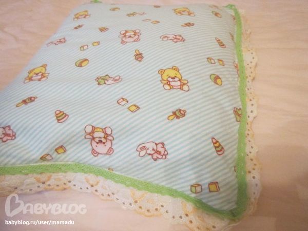 Она не большая, квадратная, при желании можно, конечно сделать длинную и самим... но нам именно этот размер оказался в самый раз! У нас подушка нужна только в момент укладывания-засыпания...