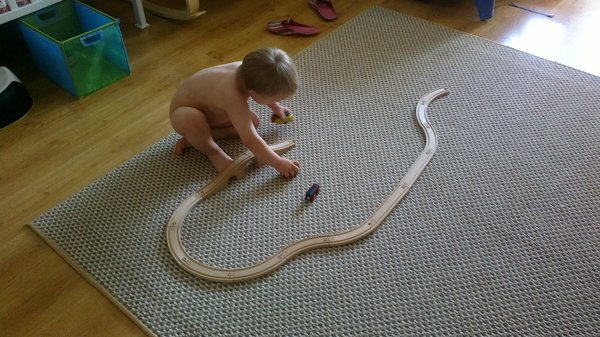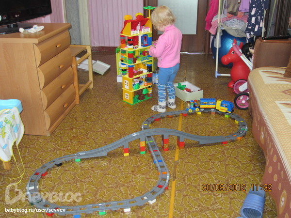 Выбор подарка ребенкуПоследние недели 2 ребенок начал проявлять активный интерес к железной дороге, (у нас вот такая), раньше просто один поезд запускал по полу, а сейчас все как полагается, рельсы надо собрать, вагоны прицепить, животных посадить. Но проблема в том, что рельсы короткие, и вагоны очень легко разъединяются, ребенка это раздражает и он начинает орать и все швырять. Приходится все время рядом быть и вовремя все поправлять, чтобы он не истерил. Решили купить новую дорогу, посерьезнее, но от обилия глаза разбегаются. Прошу вашего совета как всегда. Требований немного: чтобы надежно все скреплялось и не разваливалось, поменьше всяких съемных деталей, и чтобы поезд можно было не только по рельсам запускать. Вот в принципе и все. Похвастайтесь, пожалуйста, вашими железными дорогами))))