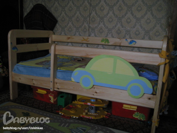 МанежиКупили новую кроватку и решили дополнить ее самодельным бортиком-машиной вот что получилось