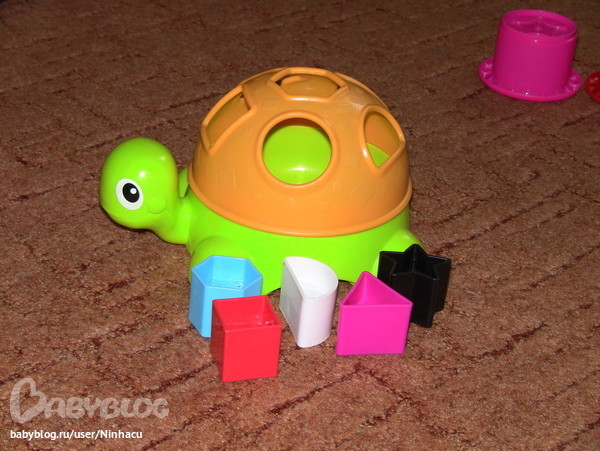 Эта черепаха все еще с нами)) Жек начал вставлять фигурки. Горизонтальную влет, а остальные - если мама покажет, куда пихать.