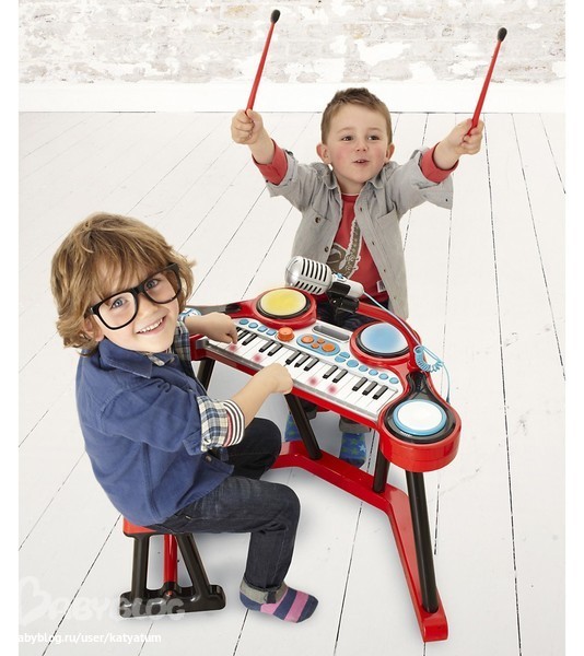 1. Пианино или установка. Гаврилка у нас истинный музыкант. У него есть уже одно пианино с разными песенками и звуками для маленьких российского производства. Играет им с 1 года и по сий день. Думаю, надо ему купить что-то новенькое. Выбираю..