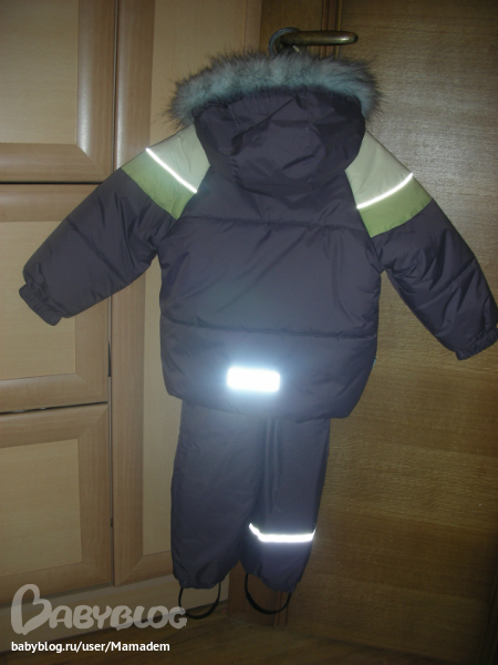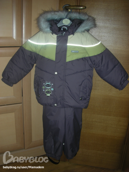 Супертеплый комплект Lenne: куртка 330 гр изосотфа, штаны - 180 гр. Покупала у бб-шечки Наташи из пристроя. Она мне посоветовала именно эту расцветку, сказав, что очень красивый серый. Так и оказалось - он не серый, а серо-баклажановый. Нам нравится очень. Легкий, как пушинка. На шее флис. Модель не большемерит. Купили на 92 при росте 83 - сидит нормально.