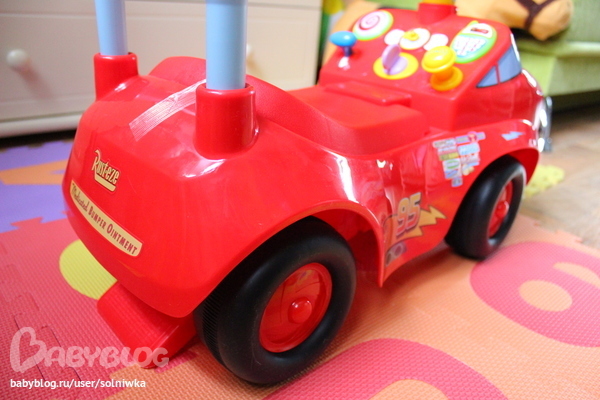 Так, что в общем игрушка очень достойная. Но есть еще момент, который я не учла в выборе каталки - это высота сидения от пола. У этой каталки она 20 см, что нам оказалось маловато!
