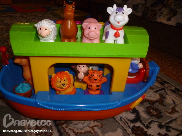 4. Ноев ковчег. Мне больше нравится,чем сыну,интересная игрушка,голоса животных четкие,похожие. пока только музыку слушаем,на клавиши давим,знаем некоторых животных,а вот на место кладем только льва пока(основание круглое-самое удобное,наверное).