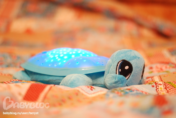 А мы под неё засыпать не хотим))))) Начинает танцевать по комнате  под песенки, ей нравится, как звёзды танцуют)))))))) Короче отобрала вчера со скандалом. Пишу, а за спиной дочь с черепахой танцуют. Вроде бы я её спрятала))))))Всем друзьям куплю по черепахе-антисон.))))))