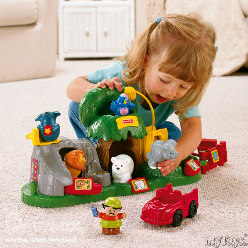 фишер-парйс зоопарк. раньше играла, сейчас уже реже. это серия литл пипл, если малышке понравится, то можно докупать другие наборчики.
