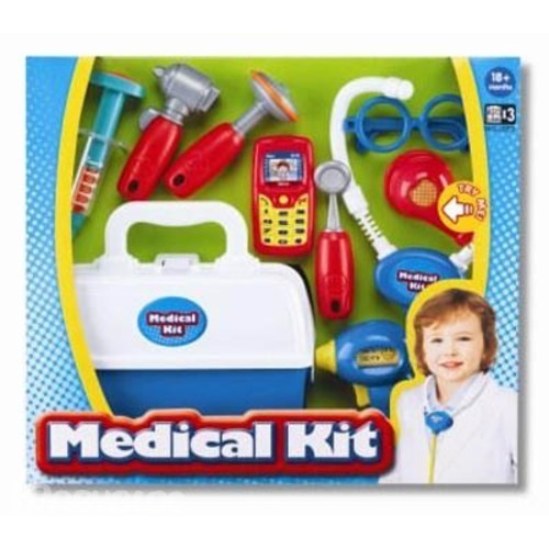 у нас такой набор, очень довольны, отличное качество, крепкий и неубиваемый, стетоскоп озвучен, ушной градусник - нажимаешь кнопку - меняется температура, и прибор мерять давление - нажимаешь на грушу - а там сердечко типа вверх подскакивает!!!!