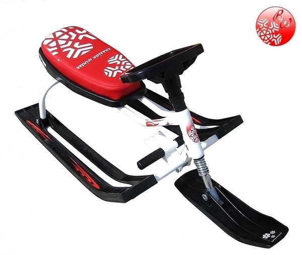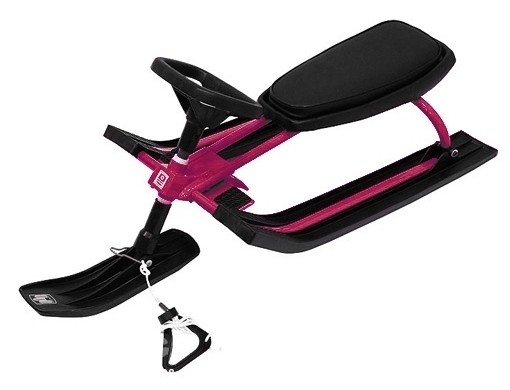 Сидение удобное (я спциально искала с кожзамом, т.к. на мой взгляд холодно сидеть на пластике). Тормоз сам не тормозит. Веревка не сматывается в каробин, но это не мешает кататься с горок. Лыжа не застревает. Да и по дизайну этот снегокат симпатичный!!!