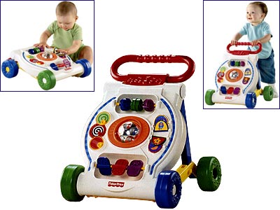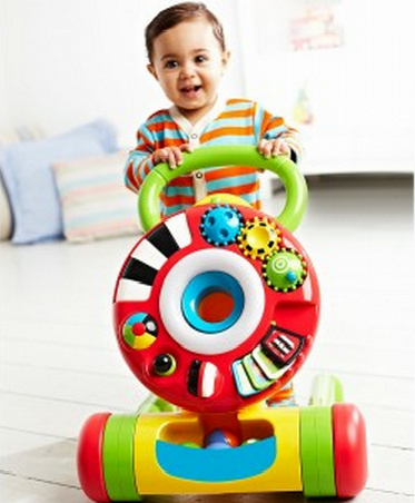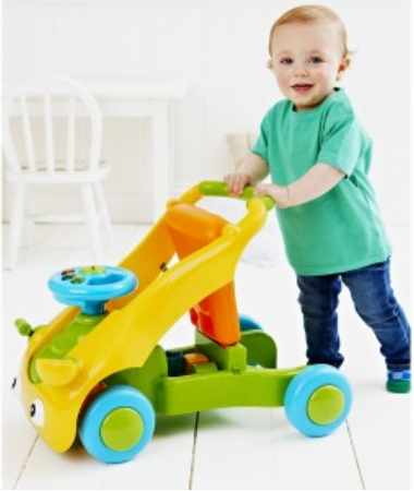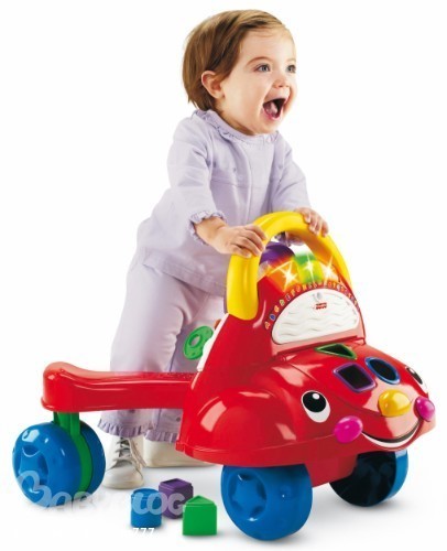 Как мне кажется похожа на Playskool. Растет вместе с ребенком. Сначала это ходунки, с помощью которых малыш делает первые шаги. Позднее трансформируется в машинку-самокат. Руль можно крутить, передачи - переключать, гудеть в гудок и нажимать на кнопки, которые включают музыку. Заявлена с 12 мес.