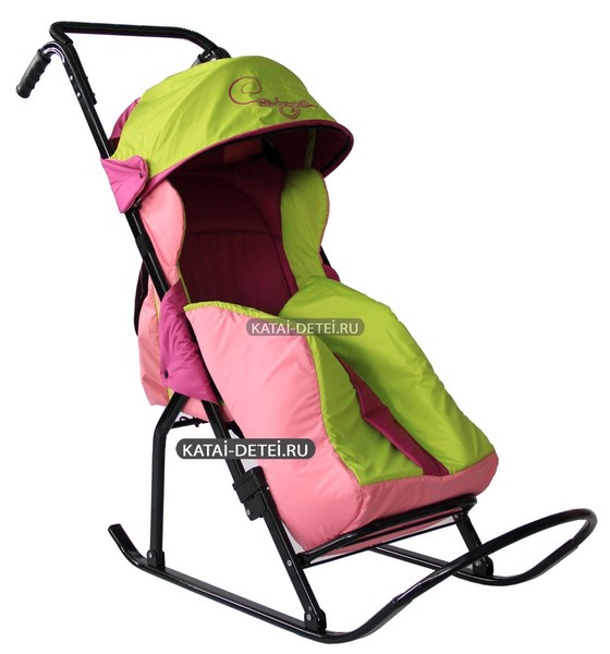 Вотрой вариант для деток постарше и мне, если честно, они вообще не нравятся. Ребенок сидит прямо над снегом, от ветра они не закрывают потом в них будет холоднее. Но если ребенку больше 3-х лет и ребенок долго в санках сидеть не будет, то этот вариант тоже можно рассмотреть