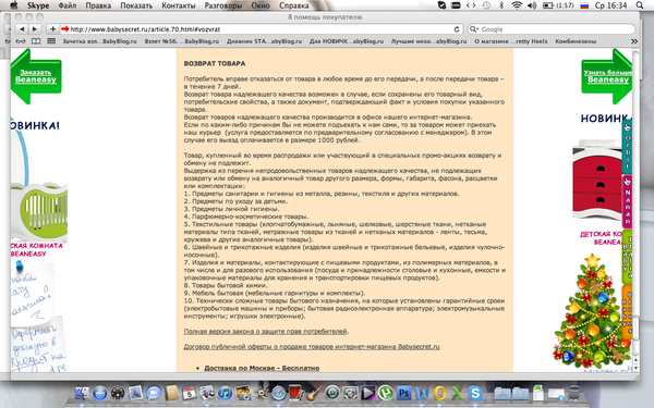 Нет, есть закон о правах потребителей, по которому я могу отказаться от покупки в течение 14 дней при наличии чека и всех бирок. У меня все в наличии. Мало того, на сайте данного интернет-магазина есть такая запись об условиях возврата:  Так в чем я не права? ничего лишнего не требую.