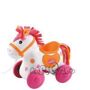 издает звук поцелуя, и смеется, когда щекочут ножки. И к ней лошадку за веревочку возить