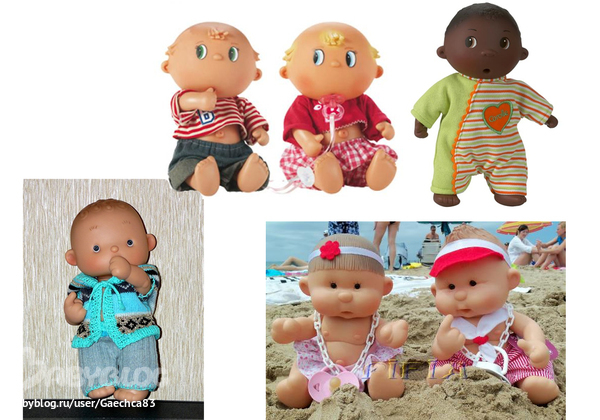 Ребенок очень заинтересовался куклами - увидели у друзей, так не хотел отдавать... Решила купить ему своего пупса. Подумала, что если купить винилового, то в качестве игрушки для купания сгодится, ну и ребенку расскажу на их примере, где руки, ноги, голова и т.д. Выбирала-выбирала в интернете и наткнулась вот на таких забавных персонажей! Только найти их нигде в продаже не могу. Даже на ebay.com все перерыла.... :(