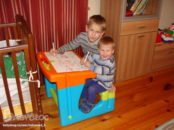 Смешнючий мальчишка у вас, даже на фото визжит от восторга))) Столик отличный и старшему место нашлось!