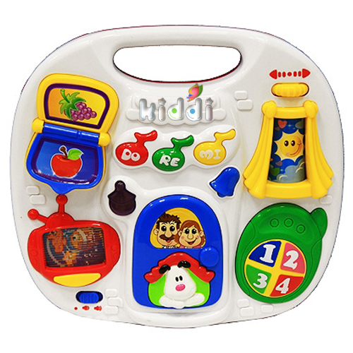 столик музыкальный от Кенвей. ножки съмные, цена демократичная, мелодии приятные, регулятор громкости. кнопочки, барабан-крутилка, там где фрукты-это переворачивается. все со звуком.