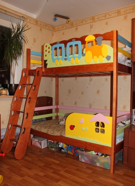Детская комната : мебель, постельное белье, предметы интерьера и аксессуарыНаконец привезли и собрали нашу двухъярусную кровать. Делали на заказ, из сосны. Дизайн выбирала сама, результатом очень довольна. А дети чуть не передрались за второй этаж :)