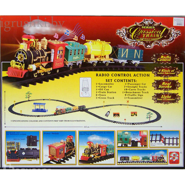 Я сегодня смотрела такой в магазине. Весь паровоз такой же как в инете. НО в магазине 4 мелодии и нет рельс ездит на батарейках. А в инете 1 мелодия и на рельсах. Странно. Пойду в магазин еще раз все внимательно рассмотрю.