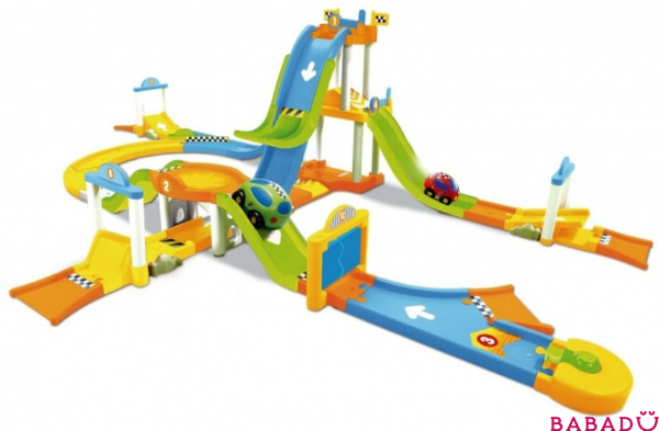 Трек с горками,тоже smoby. Очень классный, почти что конструктор, вариантов много сборки. Достаточно легко свернуть,но не ломается пока,ттт. Фнкционала не очень много,но Андрюшке нравится.