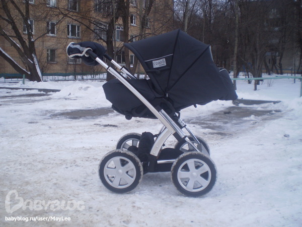 Все в ней хорошо и прекрасно. Но я очень переживала из-за лифта. Ширина I coo 63 см, а лифт в самом широком месте у меня 65. Заказала в тем-теме. Договарилась, если увижу и совсем расстроюсь, муж отвезет им обратно. Привезли. Собрали. Я бегом с одним шасси к лифту. Ура!! Влезла!!! Она влезла, НО только в рамку лифта. Эхх. Есть может быть другие девушки - женщины, но я такая, импульсивная. Хочу и все. В общем двери лифта торчат и руками не раздвигаются. Коляску никому не отдам. Она красавица. Для меня. Люди смотрят на улице. А колеса приходится снимать с одной стороны. Честно??? Меня это не напрягает. Ну что поделать если очень хочется гулять, а не таскать коляску и объезжать кочки, ямки и пр. По сугробам она легче Бебекара едет. На бордюр тоже легче. Где ее вес прячется для меня не ясно. Гуляем мы по 3 часа. И спим. И сидим. Руки не устают. И маленькая корзина, кстати не такая уж и маленькая.