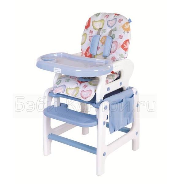 Cначала хотели обычный стулик,но почитав мнения девочек и отзывы, поняла что минимум функций должен быть. Главное ремни! Здесь пятиточечные,удобно ребенка застегивать и вынимать потом. Три положения спинки( тоже необходимо так как ребеночек все равно сразу не сидит прямо, а сажать под прямым углом по моему мнения точно не стоит). Легко снимается столешница а также регулируется вперед назад, что тоже удобно в зависимости от возраста. А так же он трансформер. И что для меня не маловажно это супер пластик! Легко моется, он экологичен. Хоть он и без колес но ездит по ламинату просто как по льду,но когда ребенок сидит он устойчив как каменная стена)))))))) Удачи в выборе.