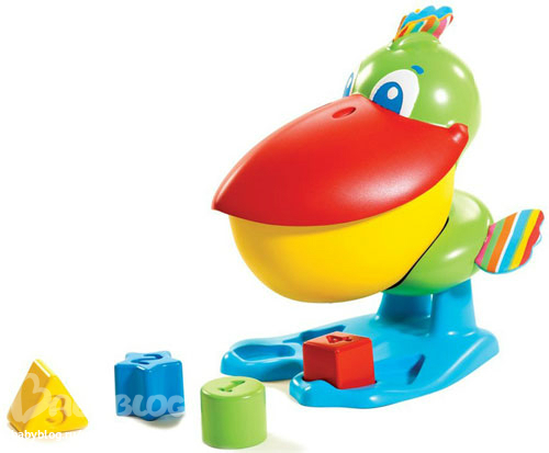У нас пеликанчик. Купили на 9 мес, играет и сейчас ) Детали крупные, удобно для маленьких ручек. В горшок играли у знакомых, тоже понравился.