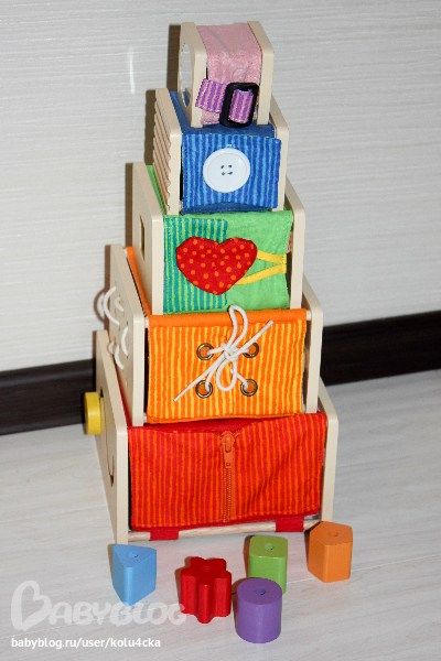 Развивающий набор из дерева "I M TOY".Очень достойная игрушка для развития мелкой моторики и мышления малышей ( в ней есть всё, что так привлекает детишек 1-2 лет: пуговицы, застёжки, шнурки, сортёр, в общем, дочка обожает возиться с ним. )