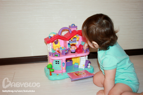 любимый домик "KIDDIELAND", дочка обожает нажимать на кнопочки, слушая музыку, лай собаки, скрип двери, звон телефона и всего остального, в дополнение к домику идут две фигурки (мальчика и девочки) и кресло с телевизором; качество пластика отличное, звук хороший, в общем, замечательная игрушка, всем рекомендую.