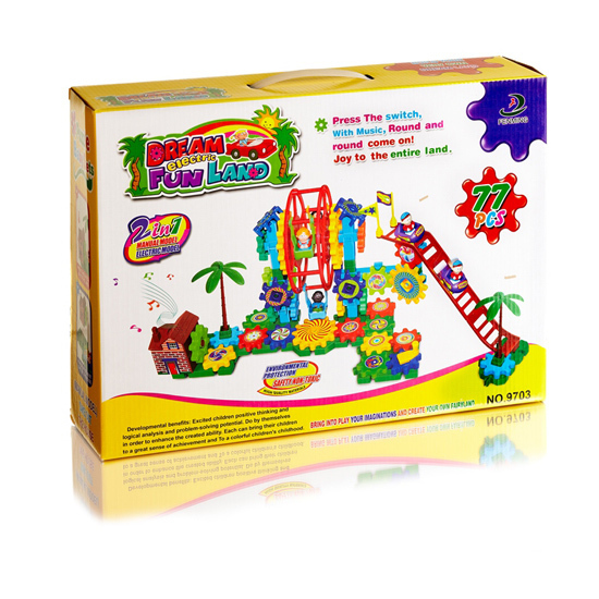 У моих две игрушки из серии шестеренок - паровоз и волшебный сад.Нравится,только строят из этих элементов,что в голову взбредет