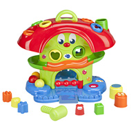 Хороший качественный пластик,яркие цвета,но есть большое НО!На крыше данного домика(справа на фото)есть зелёная труба и туда надо "забивать" шарики(он слева на фото) пластмассовым молоточком,затем эти шарики по горке скатываются внутрь домика.Только вот диаметр трубы совсем не подходит к шарикам(или наоборот шарики не подходят по диаметру).Вобщем чтобы шарик "упал",я взрослый человек приложила массу усилий(путём продавливания шарика).Решила я постучать молоточком по шарику-так домик затрясся,что я испугалась,что его сломаю.Тогда я решила убрать трубу совсем,там просто отверстие.Кидаю шарик,а он падает не на горку(как должен),а просто на пол рядом с игрушкой.Ещё меня удивило,что формовых отверстий для сортера 9,а формочек всего 3шт?
