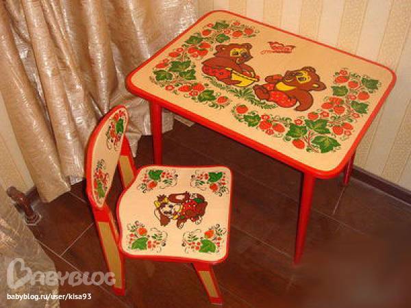 У нас уже второй год,как на первом фото,только роспись другая.Дочке очень нравится,она практически все делает за столом (занимается,играет,кушает).Думаю,что еще надолго хватит.