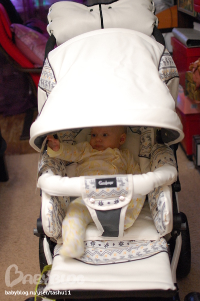 Я прям фанатка теперь этой коляски. Гулять с ней одно удовольствие! У нас кремовая кожа. (но мыть ее это пытка) Не думайте пока об этом, просто наслаждайтесь :)