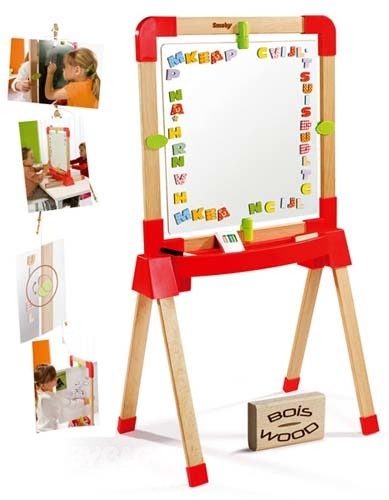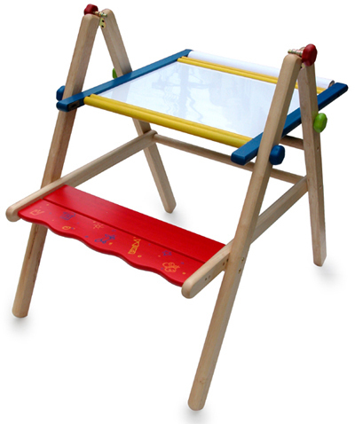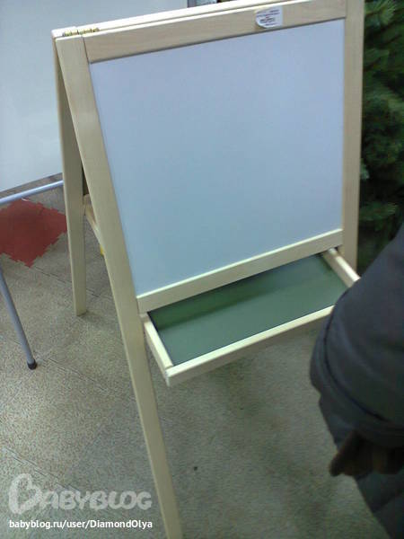 У нас тоже есть отдельно столик и стульчик, но мне очень понравился этот мольберт своими многочисленными функциями (двухсторонний, есть крепление для рулона с бумагой+она крепится к рабочей поверхности и не двигается, очень удобно рисовать на бумаге.). Поэтому буду брать его)