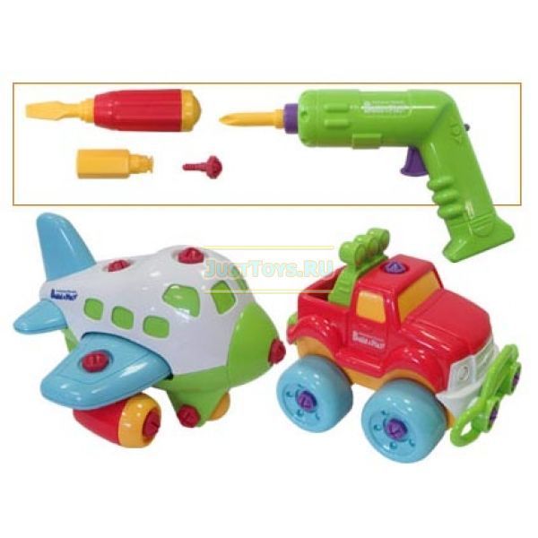 Развивающая игра «Прикрути колесо» . Ребенку необходимо дополнить транспортные средства недостающими деталями: к самолетику прикрутить винт, к пожарной машине – лестницу, к трактору – большое колесо, к машине – два колеса. Играя с этим набором ребенок знакомится с основными видами транспорта, развивает мелкую моторику, навык закручивания, а также логическое мышление.