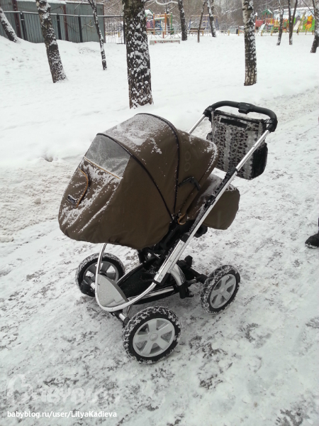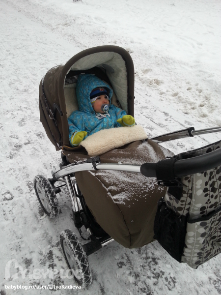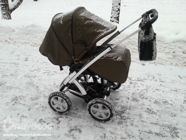 2. Маневренность. Конечно, она не такая как в колясках с полностью поворотными колесами (но эта проблема отпадает у Pii), но мне достаточно. Можно развернуть одной рукой. Ну и проходимость. По сугробам проезжаем.