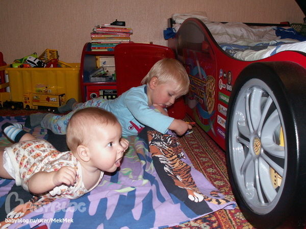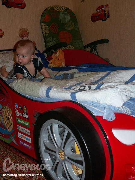 ему ровно было. Два дня порадовался, что машинка. Щас взяли детскую секцию с кроватью на втором этаже..вот от неё он балдеет.. что спать наверху.