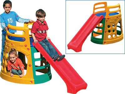 Два лета девчонки катаются, пластик даже не выгорел. Не скажу, что любимая игра, но ажиотаж есть постоянно, особено с нее в бассейн съехать. Устойчивая, довольно удобные ступеньки, главное - большая площадка наверху, это было необходимо, брали на двухлетие. Насчет использования дома - не знаю, на участке замечательная вещь