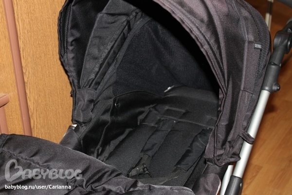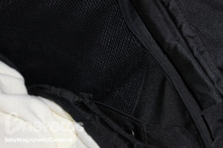 Ну под капюшоном. Когда сиденье полностью опущено ткань капюшона не прилегает плотно и там как "жабры"остаются внушительных размеров....