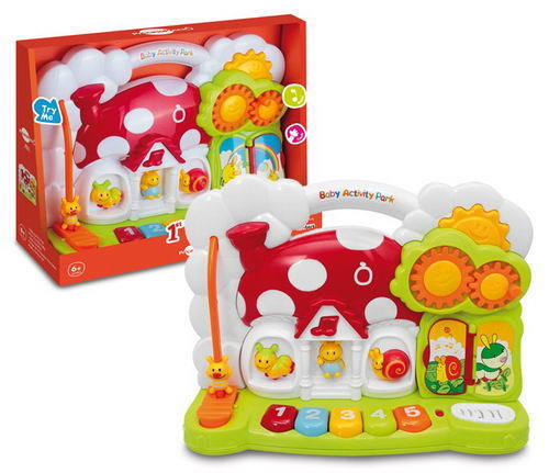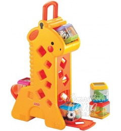 Жираф. Сначала просто показывала дочке кубики с животными. Больше всего нравился с зеброй. В нем, когда колесико поворачиваешь треск раздается. Потом она начала пальчиком всего жирафа изучать. А сейчас уже научилась кубики в него кидать, что б музыка играла. Ну, и все…игрушка себя исчерпала. Хочу предостеречь: кубики надо мыть аккуратно. Я их просто кинула в таз. Они заполнились водой и кубик с попугаем внутри поржавел.