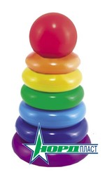 Пирамидка-неваляшка. Кольца одеваются очень легко, а вот голову – в нашем возрасте нереально (очень маленькое отверстие).
